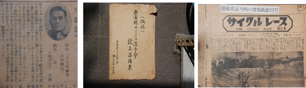 鍋谷の素晴らしさは競走成績だけではなく、小倉競輪が発足する3カ月前、「兵庫県サイクル選手会設立準備案」(中央の写真)という素晴らしい趣意書を残してくれている。機会があればぜひとも紹介したいが、このほか、各地の専門紙(右上の写真=競輪開設直後の専門紙)や公文書も手元にあり、こうした貴重品があったからこそ私も半世紀の間、競輪にしがみついて全力を注げたのだと感謝している。