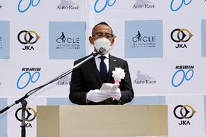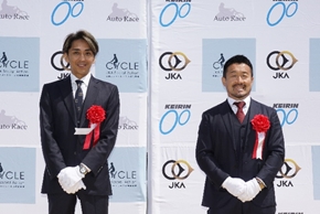 「僕たちが走るレースの売上の一部が社会に還元され、地域の皆様のお役に立っていることを誇りに思います。昨年レース中の事故でケガをしてしまい、今は療養中ですが、一日も早くレースに復帰できるよう日々のリハビリを頑張りたいと思います。復帰戦ではいいレースをして場内を盛り上げたいと思いますので、近くからでも遠くからでもいいので応援してください。」