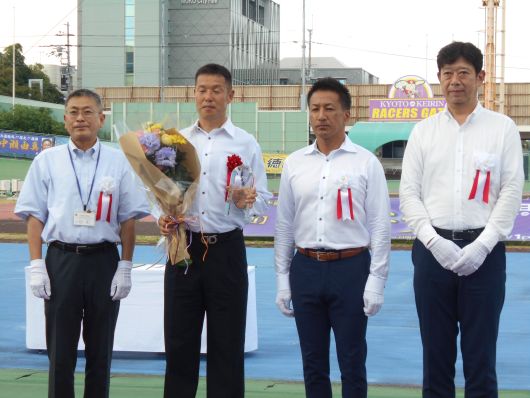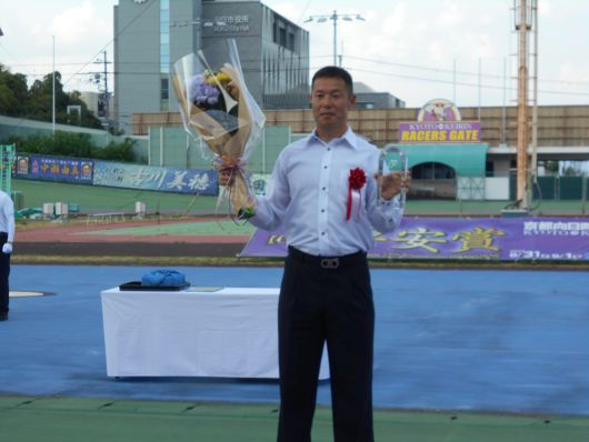 8月21日、京都向日町競輪場において川村晃司選手(京都・85期)の通算500勝表彰式が執り行われました。