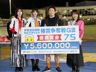 伊東温泉競輪場で開催されてきた開設75周年記念「椿賞争奪戦(GIII)」は12月14日に最終日を迎えた。注目の決勝戦は、中野慎詞が先行する展開で、3番手をキープした深谷知広が鋭くまくって1着。当所記念2度目、静岡に移籍してからは初の優勝を飾った。これで今年の深谷は2月静岡記念と合わせて地元記念を共に制覇。なお、深谷のGIII優勝は今年3月の名古屋記念以来で通算24回目となる。