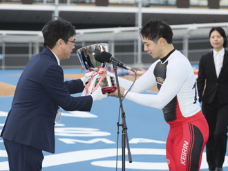 打鐘から巻き返した町田太我のスパートは迫力満点。2着に粘って松浦とワンツーを決めたが、レース後の瞳には光るものあり、悔しさが残った。優勝こそ叶わなかったが、パワーアップした姿は地元ファンの記憶に深く刻まれたことだろう。来年度の27年に当地で行われる全日本選抜でリベンジを誓う。