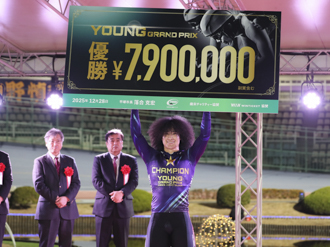 番手から西田、4番手から阿部英斗も踏み込むが、スピードに乗った中石には無関係だった。バック過ぎに射程圏に入れたのもつかの間、そのまま前団を仕留めて、直線の入り口で先頭。後続を退けて、07年の菊地圭尚(89期)以来となる北海道からのヤンググランプリのチャンプが誕生した。
