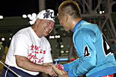 「昨日は齋藤(登志信)君が捨て身で行ってくれたし、今日は前の2人のおかげですね。今日は、可愛い後輩たちと朝まで飲みます。(ビッグ優勝までは長かった?)ケガもあったし、でも、ケガがなかったとしても獲れない時は獲れないですからね。記念すべき第一回大会を優勝することができ嬉しいです。妻が一番喜んでくれているんじゃないですかね、いろいろ料理とか気を使ってくれているんで。