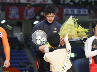 (先頭でゴールして)嬉しいのとちょっとまだ信じられないのとでって感じですね。(九州からは19年6月高松宮記念杯を制した中川誠一郎以来のGI優勝となるが)自分も去年とかその前も調子を落としたりして、なかなか上がっていかずに苦しい時期もあったんですけど、何とか優勝できたんで。(今回がGIの決勝は)初めてですし単騎だったんで仕掛けどころを間違わずに力を出し切れたらなと思って走りました。(初手は最後方にいたが)最初にいくラインに付いて行って、あとは流れを見てって感じですね。(関東勢が上がるのに付いていって3番手になったが)後ろを見る余裕はなくて、前の吉田(拓矢)さんたちの動きにだけ集中してって感じでした。この舞台であんな絶好の位置を回って来ることはそうそうないと思うので。しっかりチャンスをモノにできたので良かったです。(最終2コーナーからまくったが、番手の恩田淳平に)結構、車間を空けて見られていたのでちょっと行きづらかったんですけど、踏んだら行けるなって感じで。(4日間を振り返って)初日から割と自分の中ではいい状態だったんで。(来年2月の地元GIをS級S班として走ることとなったが)それ(S級S班)を目標にやってたんで。でも責任ある位置だと思うんで、その辺考えてまたこれから練習していけたらなと思います。(デビューしてから初タイトルまで自分の中では)長かったと思います。(年末のグランプリについては)全然まだ頭の中で考えられてないんですけど、その辺は帰ってじっくり考えられたらなと思います。