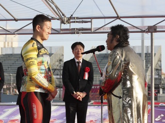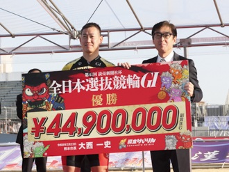 自分の怪我の状態が万全じゃない中で、近畿のみんなに助けられた決勝戦だったなと思います。今回の決勝に関しては優秀戦のレースの失敗があったからこそのレースだったと思いますし、寺崎(浩平)君もそれが分かった上でのレースの運行だったので、そのあたり本当に上手くいって良かったです。僕はもう赤板の1コーナーでそれを察知して。(寺崎の)加速の仕方が同じ失敗はしないっていう駆け方だったので、僕もそれに対して失敗しないように早めから車間を切ってなるべく後ろから来られないようにしようって思ってました。ジャンのところから寺崎君もすごい加速だったので僕自身、ちょっと余裕はなかったですけども。(怪我がありながら今年に入ってここまで強いレースを見せられているのは)今回に関しては(左肘の怪我の影響で)戦法の幅が狭くなっている中で、やることが決まっているという気持ちの吹っ切れのところからきていると思います。(寺崎とは)お互いにタイトルを獲らせてもらったり、獲ったりという関係の中で、お互いにできることはやろうって思っていたんですけど、寺崎君もこれだけ頑張ってくれた上で。近畿のみんなも、今回連係してくれた古性(優作)君にしても(三谷)将太にしても、その辺は理解してくれた上でのレースだったので。そのあたりはしっかりやろうと思ってました。(今年も真っ先にグランプリ出場の権利を手に入れて)去年失敗した分も踏まえて、より近畿の層を厚くしてグランプリに臨みたいなと思います。(14年ぶりの熊本競輪場でのGIは)変わらず熊本のお客さんの声援が熱くて。その熱さに僕たちも魅了されて、その分レースで返していくってことが自分たちのモットーだと思うのでそれを返せたかなって。ちょっとわからないですけど、その声援に応えられて良かったですね。(熊本では以前)トレーニングもさせてもらって環境いいなって思っていたので。そのあたりもお世話になったなと思います。肘の完治具合というのはまだまだだと思うので、そのあたりは気を緩めずに治療を進めて(次走の)ウィナーズカップではより一層体を仕上げていければなと思います。