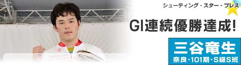 岸和田競輪場で行われた第69回高松宮記念杯競輪(GI)を優勝し、第72回日本選手権競輪に続き、GI連続優勝を果たした。脇本雄太選手の猛スピードに後続が大きく離れる中、三谷選手はしっかり追走し、最後は交わして栄冠を手に入れた。近畿唯一のS級S班選手として、プレッシャーのかかる中、それを見事に跳ね除けた。三谷選手、脇本選手の強さがこれからも近畿の中心になっていくだろう。