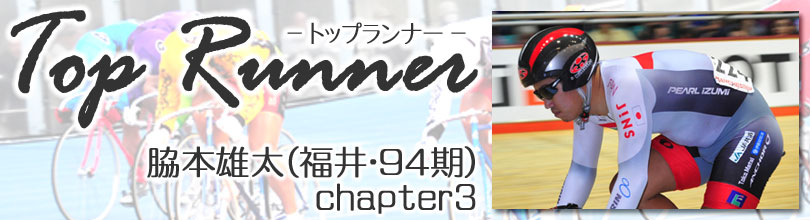 1年間を通して脇本選手を追ってきたこの「トップランナー」もいよいよ今回が最終回となりました。今年はナショナルチームに選抜され、競輪と競技の両立を図っている脇本選手。その過密スケジュールが影響したのか、競輪ではなかなか目立った成績を残すことが出来ないでいます。しかし、その類まれなる先行力は誰しもが認めるところで、今年最後の特別競輪、競輪祭や来年の活躍に期待したいところですね!