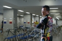 誰もいない整備場。整然と並ぶ自転車が穏やかな光を浴び、まもなくウォーミングアップに訪れる選手を心待ちにしている。