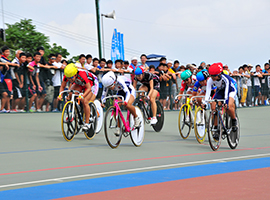 自転車競技はトラック、ロードともに山梨県笛吹市で開催。今回は8月6日~8日の3日間に渡って境川自転車競技場で行われたトラックレースの模様をレポートする。尚、現在インターハイの自転車競技では男子種目のみ正式採用されているが、女子は公開競技としてトラックレース(今年は4種目)が実施されている。