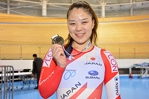 「アジア選手権のケイリンでのメダル獲得はこれが初めてだと思います。今回表彰台に乗った3人は、昨シーズンの世界ランク1位から3位のメンバーですが、その中で戦って手応えを感じることもできました。決勝のレースは、ちょっと躊躇してしまった部分はありますね。それが敗因かなと思います」