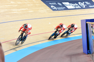 1部では女子オムニアムのスクラッチレース、テンポレースと男子1㎞タイムトライアル、男子4㎞インディビデュアルパーシュート予選がおこなわれた。