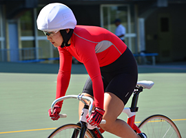 「風が強いなか、200mFDと400mFDは出たんですけど、ちょっと1000mTTがあまり良くなかったので、もっとタイムを伸ばせるように頑張りたいです。目標タイムは200mFDは10秒台で、400mFDが23秒切れるぐらいで、1000mTTは8秒台を出したいんですけど、今ちょっと調子悪くて出なかったんで、3000mTTは一所懸命頑張りたいです」