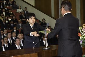 滝澤正光日本競輪学校長から各回生代表に卒業証書が手渡されました。