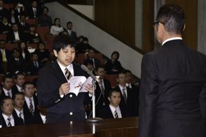 冒頭に卒業生が各担任の教官から、名前を呼ばれ起立。