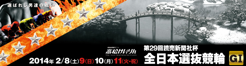 今年の競輪界をリードしていくのは誰か? 2014年のタイトル戦線の幕開けを告げる第29回読売新聞社杯全日本選抜競輪(GI)が高松競輪場で開催される。中心なるのは年末のグランプリで別戦を完封する圧倒的な走りを見せつけた深谷知広だろう。昨年果たせなかったGI制覇を目指して激走する。昨年覇者の平原康多を始め3人のS級S班を擁する関東勢の充実ぶりも素晴らしく、日本一の追い込み選手・成田和也を司令塔とする北日本勢の一発や地の利を活かす地元・四国勢の奮起にも期待したい。