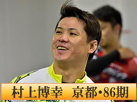 近畿で近況好調なのが弟の村上博幸だ。11月の大垣記念決勝では三谷竜生-稲垣裕之-村上博幸で結束、三谷は捲り不発だったが、番手から自力発進の稲垣をゴール前で村上がズブリと差して優勝、12月の広島記念決勝は稲垣裕之-村上博幸-北野武の並びで稲垣は捲り不発に終わったが、村上はうまく先手ラインの3番手にスイッチすると直線外を鋭く伸びて記念連覇を達成と、14年に全日本選抜を制覇したころの鋭さが戻ってきている。