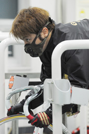 ![]() ウォーミングアップをする佐藤慎太郎 |