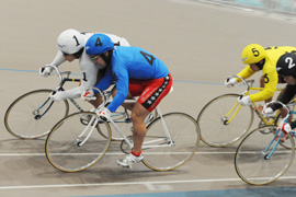 ![]() 落車した伏見以外の決勝メンバーも 表彰式に出席 |