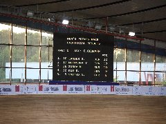 なんで、モスクワまで行ってきたのかと申しますと、ジュニア世界選手権がモスクワで開催されたんです。場所はモスクワの中心からやや郊外に向かった所にあるクリラツコエ・ヴェロドローム。モスクワ・オリンピック開催のために建設されたこの競技場、屋内で木製の周長333.3mのトラックを有し、今年が開設30周年とのこと。それを記念して、「世界新記録が出た場合は賞金を!」なんて文字も見えます。ま、賞金の額は400ユーロ、5万円強といったところですか。ジュニアですしね、あるだけ励みになるというところでしょうか。でも、この競技場、ジュニアを含め、最近世界新記録が出ているトラックなんですねー。そう、先日遅ればせながらお伝えしました、ケヴィン・シローが出したフライングの200mタイム・トライアル、9秒572はこのトラックでのものなんです。ロードもこの近郊で開催され、ジュニア世界選手権の日程はロード、7・9日、トラック、11~15日で、私はトラックの日程に合わせて行って参りました。今回はそのレポートです。 |