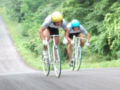 日本競輪学校では、6月12・13日の2日間に渡り、"第1回登坂王決定戦"を行いました。全長280mの走路のうち、80mある登坂部の最大傾斜はなんと30%にも及びます。レースは5人または6人の生徒が合図と同時に一斉にスタートし、直線で加速をつけて急斜面を一気に駆け登るというもの。登坂で勝利を収めるには、ダッシュ力のみならず、200mの直線後の登坂で他を引き離すパワー、持久力も求められます。 予選は3回戦のトライアルで行われ、着位上位者45人が準々決勝(9個レース)に勝ち上がり、1・2着の計18名が準決勝(3個レース)に進出。決勝は6名に絞られました。