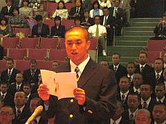 大池校長の式辞、会長訓辞、来賓祝辞、在校生を代表して北野 良栄(キタノ ヨシハル・千葉)の歓迎の辞に続き、新入生を代表して大知 正和(オオチ マサカズ・東京)が誓いの言葉を述べて終了しました。