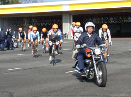 教官がオートバイで先導し、7班に編成された生徒たちが自転車で続きます。街道練習で公道を使用する際の注意事項や交通ルールを体得しながら、競輪学校(修善寺)→船原峠→宇久須海岸→仁科峠を経由する約100キロに及ぶコースを無事完走しました。