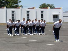 | 5月28日(金)、第100回生徒の行動訓練組対抗競技会が行われました。行動訓練とは、競輪選手として、また一社会人としての規律・姿勢を体得する為の基本動作訓練であり、学校生活においても生徒の点呼・集合等に欠かせない動作となっています。入校から1カ月、生徒たちは日頃の成果を披露すべく、真剣に取り組みました。 |