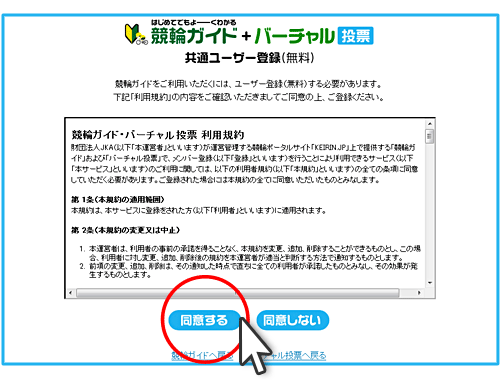 | 4.利用規約を読んで「同意する」をクリックする。 |