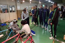 「展示訓練の為、先週に引き続き伊東温泉競輪場に行ってきました。今回は開催期間中での実習であったので、現場のピリピリとした空気を肌で感じることができました。また、お客様の目がある中での競走訓練は、いつもと違った緊張感に包まれ、とても良い刺激を受けることができました。次にお客様の前で走る時までに、より一層の脚力の向上をし、活躍する姿を見ていただきたいと思います。その為にも残り少ない学校生活を悔いなく過ごしていきます。」 |