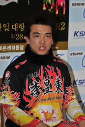 | 日本の競輪をどのように思っていたのか? 長い歴史を持っているので私たちよりも先に進んでいるのではないかと思いますが、私たちも負けないように頑張っております。そして、色んなことを学んで韓国に帰りたいと思います。 戦法 自在ですね。 意気込み お客様にがっかりするレースではなく、素晴らしいレースをお見せして、喜んでいただきたいと思います。 体調 体調は大丈夫だと思いますが、競輪場の環境に適応することが重要だと思います。 並び 韓国勢の一番前で走りたいと思います。 |
